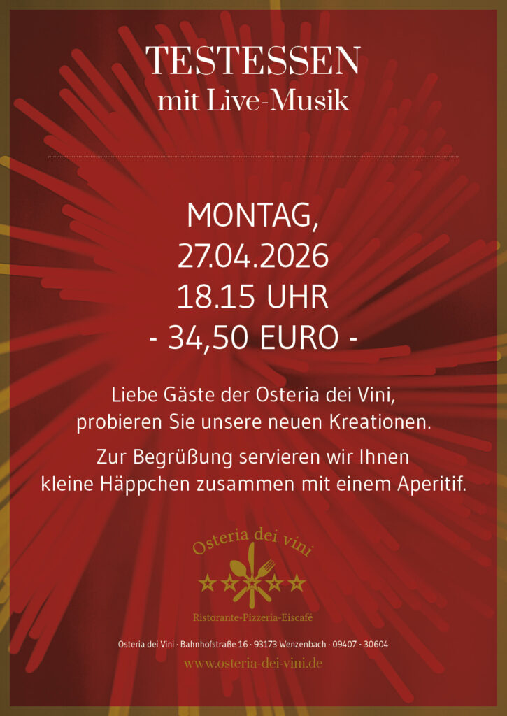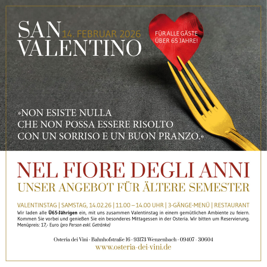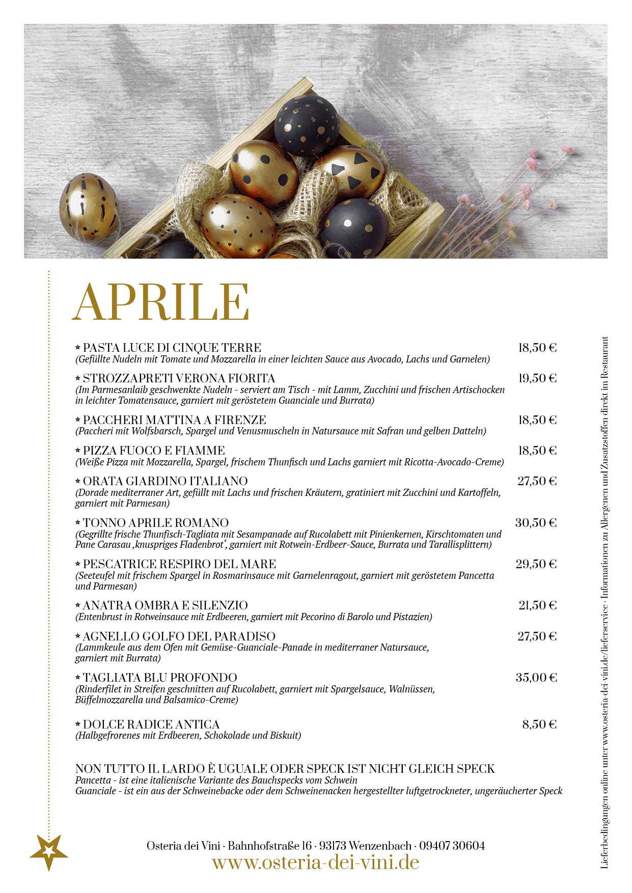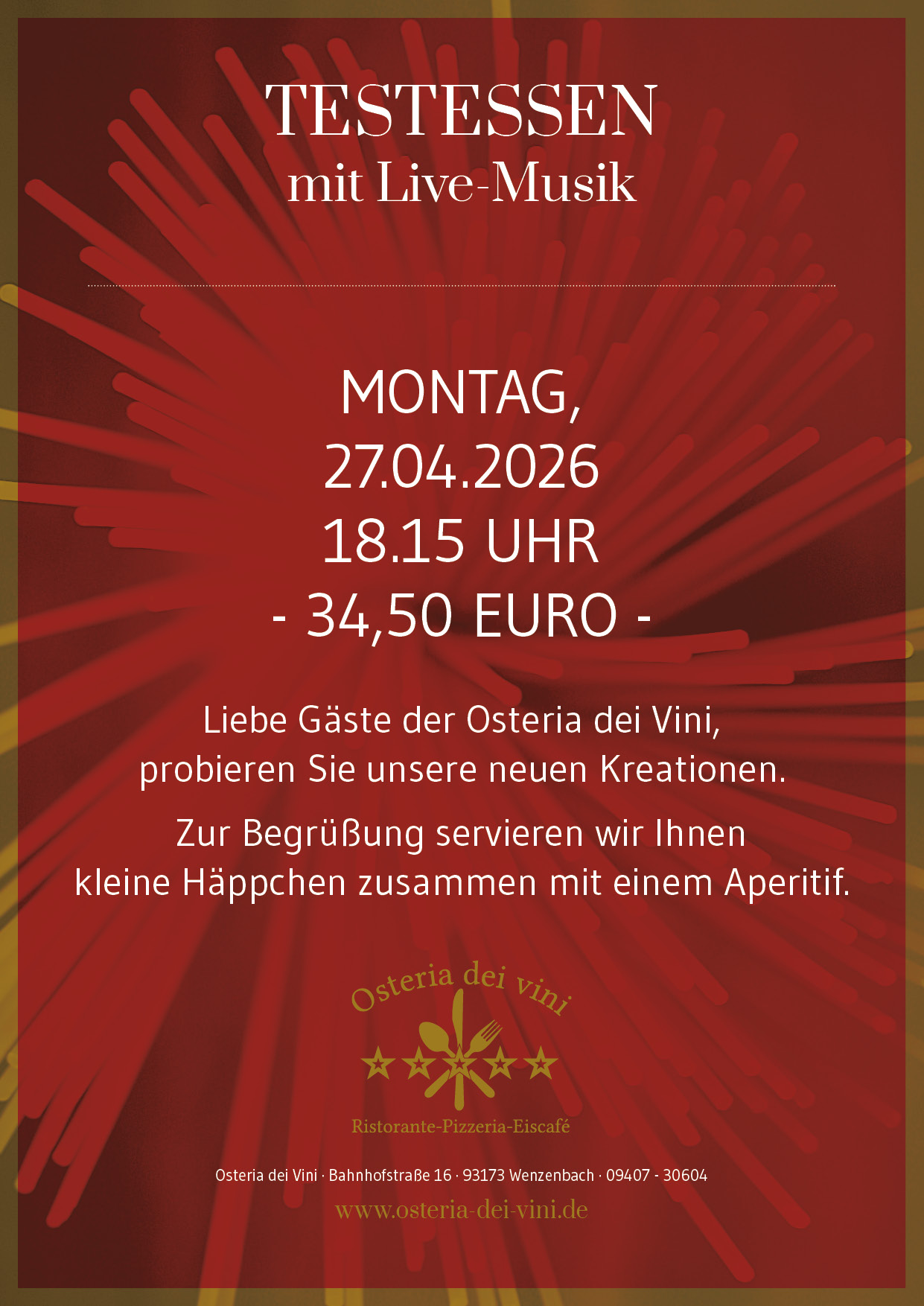 Wir freuen uns, Sie bei uns in der Osteria dei Vini begrüßen zu dürfen und hoffen, dass Sie uns – wie schon so viele vor Ihnen – als Stammgäste die Treue halten.