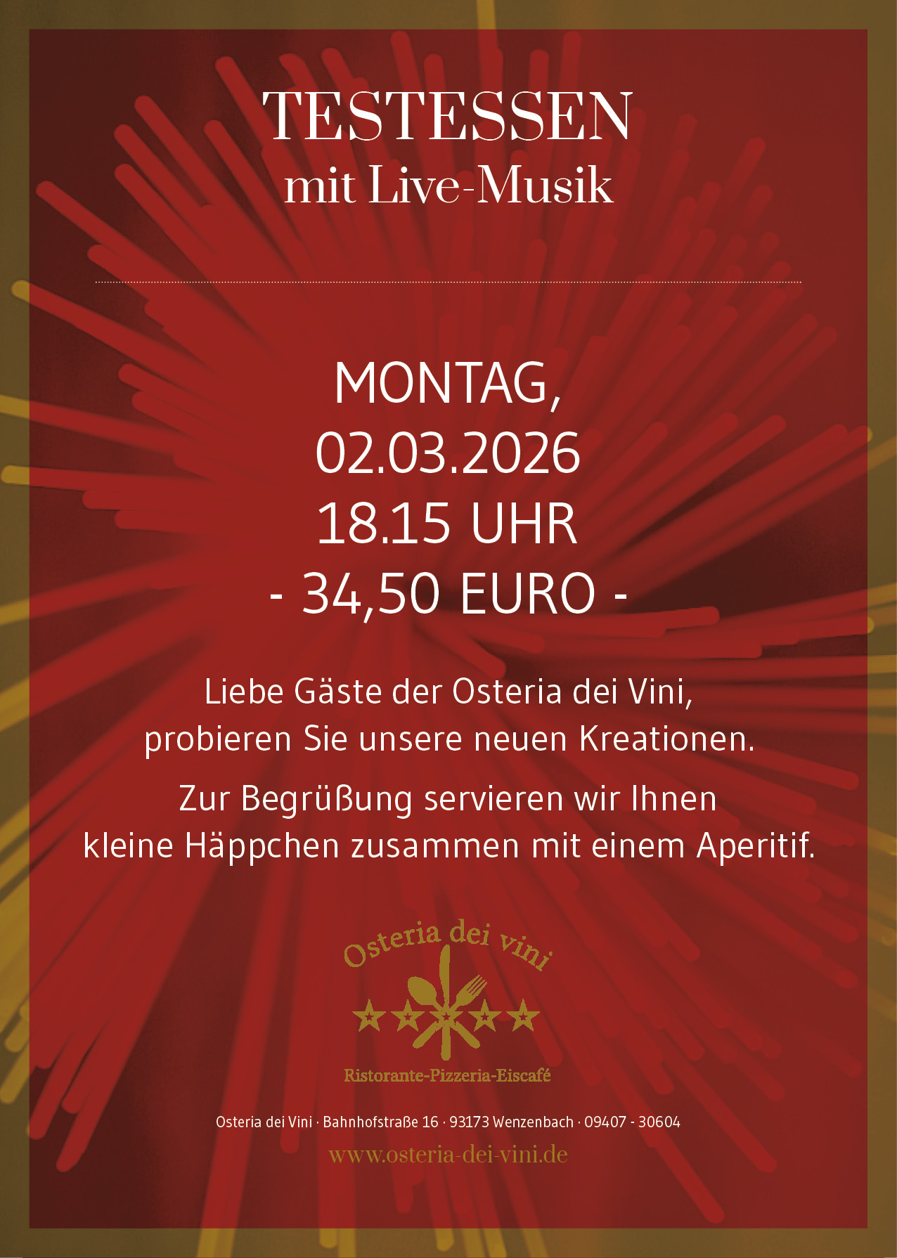 Hier finden Sie immer die aktuellsten Informationen rund um die Osteria dei Vini.